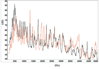 4. Την περιοχή «ρινικών» συχνοτήτων, μεταξύ 1100 και 1800Hz, όπου θεωρείται ιδιαίτερα σημαντικό να μην εμφανίζονται ιδιαίτερα μεγάλης έντασης συντονισμοί.