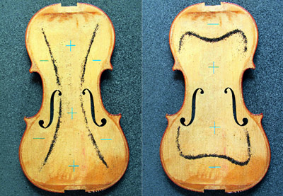 Ο Φέλιξ Σαβάρτ ήταν ο πρώτος που, το 1840, παρατήρησε ότι τα ελεύθερα καπάκια και οι πλάτες των βιολιών των μεγάλων κατασκευαστών της Κρεμόνα έδιναν έναν συγκεκριμένο και περίπου ίδιο τόνο κρούσης. Είναι πλέον καθαρό ότι το καπάκι διεγείρεται με πολλούς τρόπους, οι πέντε πρώτοι από τους οποίους έχουν ιδιαίτερη σημασία για την οργανοποιία. Το μεγαλύτερο ενδιαφέρον έχουν ο δεύτερος και πέμπτος τρόπος συντονισμού, που ονομάστηκαν αντίστοιχα τρόπος Χ (Μ2) και κυκλικός τρόπος (Μ5), από τη μορφή της διάταξης των κομβικών γραμμών τους.